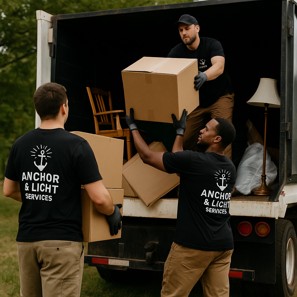 At Anchor & Light Services, we believe that every cluttered space has the potential to shine. As a veteran-owned, fully insured junk removal company serving Harford and Cecil Counties, Maryland, we pride ourselves on delivering dependable and respectful services that help homeowners, families, landlords, and businesses reclaim their spaces with confidence. Our mission is simple: to provide steady support during stressful projects and restore clarity and peace to your environment. Whether it’s a single item or a full estate clean-out, our team is here to lighten your load and brighten your day.